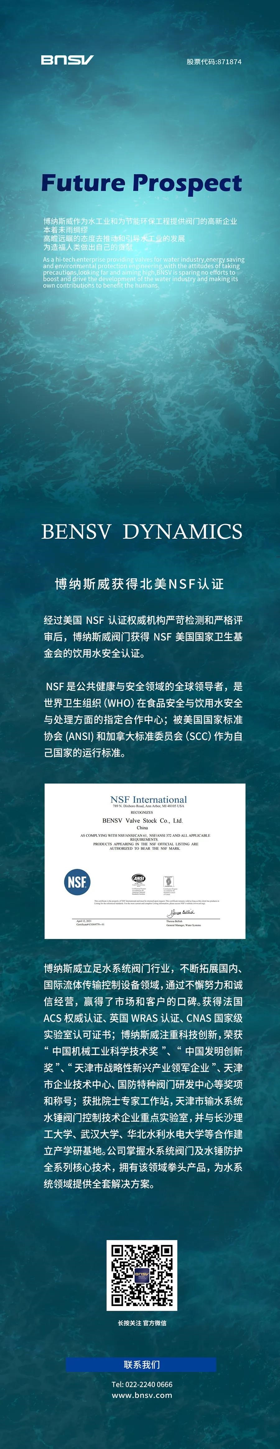 博纳斯威获得北美NSF认证