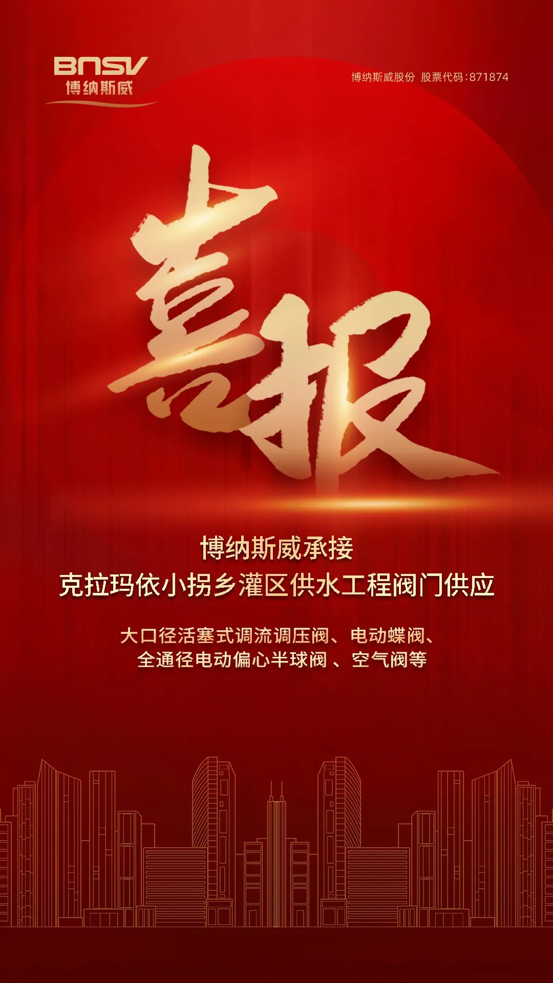 喜报!博纳斯威承接克拉玛依小拐乡灌区供水工程阀门供应