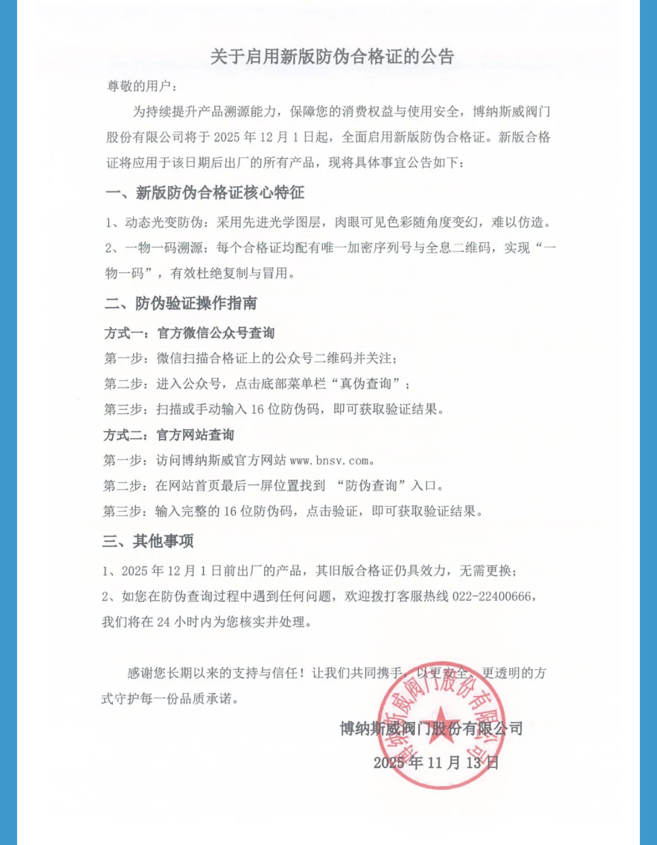 您的权益 码上保障 | 博纳斯威升级防伪合格证