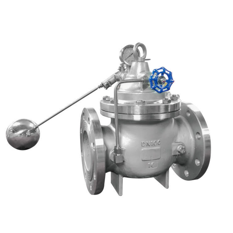 当水池或水塔内的水位逐渐升高,浮球浮起后把小浮球阀关闭时,阀盖控制室内的水便逐渐增加压力直至把阀瓣关闭,此时便起到了自动遥控的作用。当水位下降至一定程度,浮球随水面下降浮球阀被打开,控制室内的水流走,压力下降而把阀瓣托起,及时向水池或水塔补充储水。