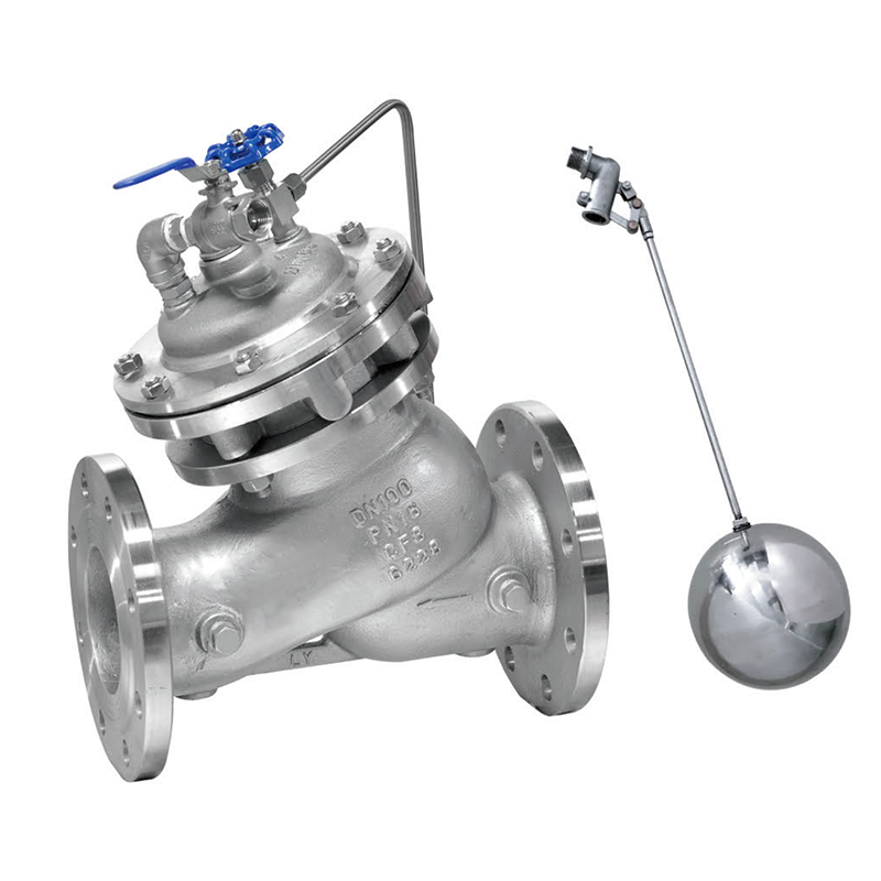 当水池或水塔内的水位逐渐升高,浮球浮起后把小浮球阀关闭时,阀盖控制室内的水便逐渐增加压力直至把阀瓣关闭,此时便起到了自动遥控的作用。当水位下降至一定程度,浮球随水面下降浮球阀被打开,控制室内的水流走,压力下降而把阀瓣托起,及时向水池或水塔补充储水。