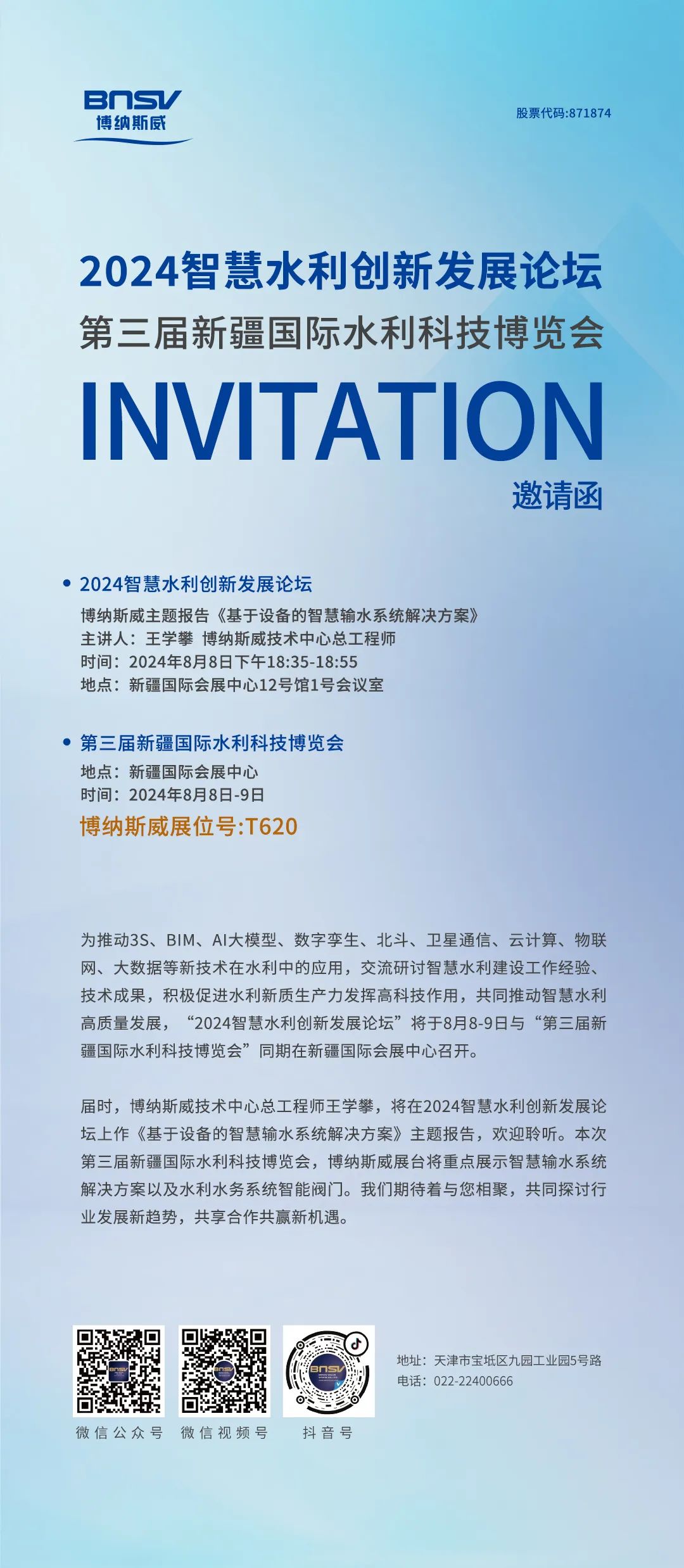 博纳斯威 | 诚邀莅临2024智慧水利创新发展论坛&第三届新疆国际水利科技博览会