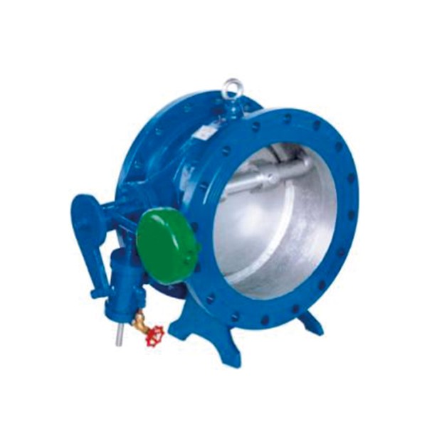 本公司生产的HH47X型蝶式缓冲止回阀,主要用于工业供水、污水处理厂的水泵出口处,防止管网中介质逆流。自动消除破坏性水锤,从而保证水泵和管路不受损坏。该阀主要由阀体、阀瓣、缓冲装置和微量调节阀组成。该产品具有结构新颖、体积小、流体阻力小、运行平稳、密封可靠、耐磨损、缓冲性能好等特点,是工业用水和城市排污的最佳产品。